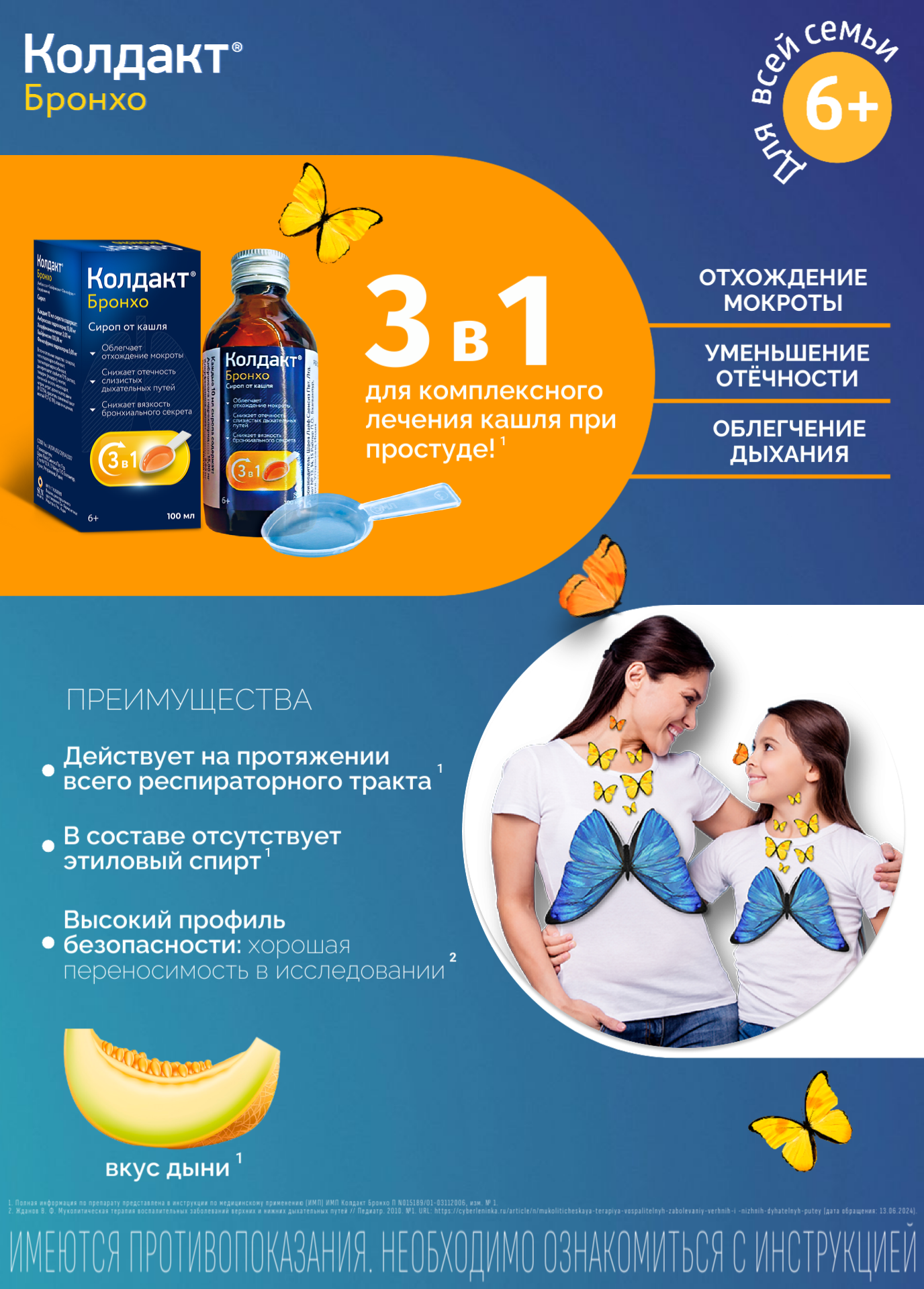 Исследование детей с острым бронхитом и ОРВИ показало, что комбинированный препарат Колдакт® Бронхо (амброксол+гвайфенезин+хлорфенирамин+фенилэфрин) способствует более быстрому разрешению кашля и симптомов ринита, особенно у пациентов с аллергопатологией, повышая комплаентность лечения.